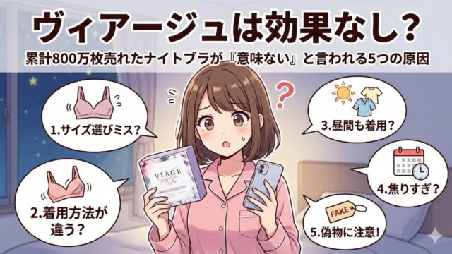 ヴィアージュは効果なし?その不安、実は「期待値のズレ」が原因かもしれません。累計800万枚売れたナイトブラが"意味ない"と言われる5つの本当の理由と、効果を最大化する正しい使い方を解説。買う前に読めば後悔しません。
